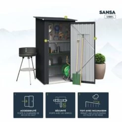 SANSA est l’abri parfait pour garder votre jardin en ordre sans prendre trop de place, car il est étroit et a une hauteur réduite de 1,60m. Cet abri est parfait pour ranger toutes sortes d’outils et d’ustensiles de jardin. Il dispose également d’une porte battante de 145 cm de haut avec une rampe d’accès. – [...]