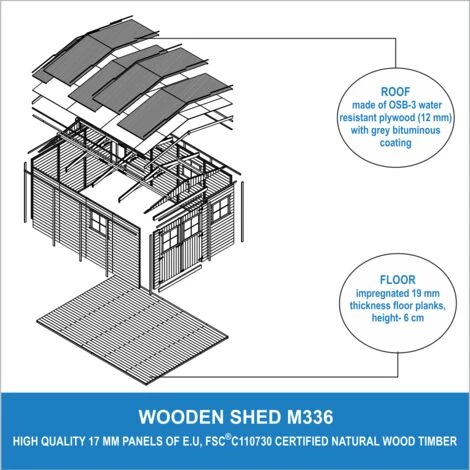 Résistant aux intempéries: grâce à la qualité des matériaux et au feutre du toit, le contenu est protégé des intempéries. Traitez le bois brut pour maximiser la durée de vie de votre abri.