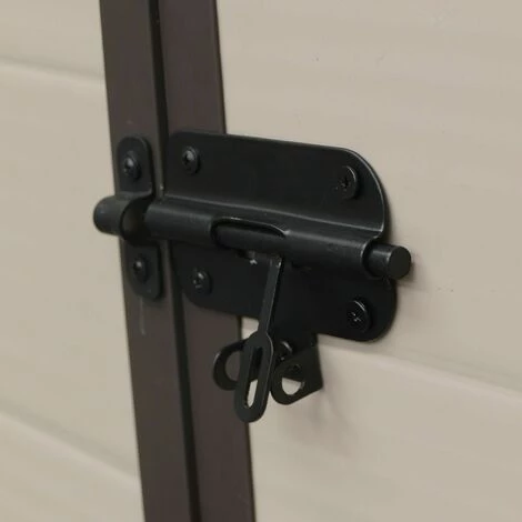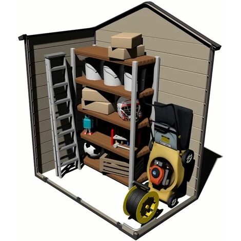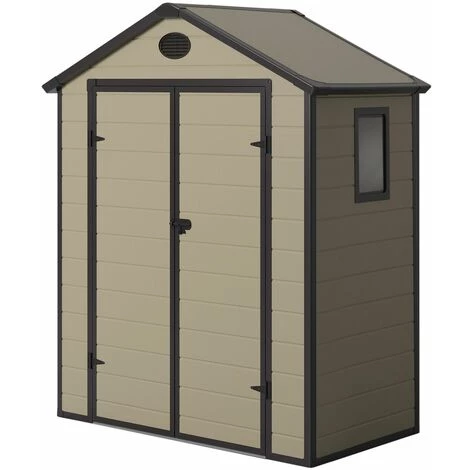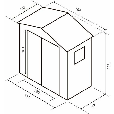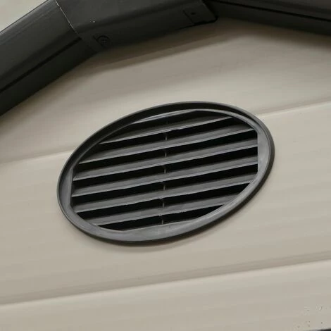 Abri de jardin en résine Rosetta à un toit à deux pans. Il a des grilles d’aération afin d’ éviter la condensation et apporter de la ventilation à l’intérieur. Il a une fenêtre latérale qui apporte de la lumière à l’intérieur de l’ abri et une double porte battante, il est donc très pratique d’accéder à l’intérieur.