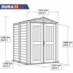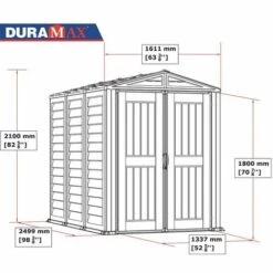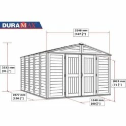 Caractéristiques Matière: Résine Longueur: 244 Largeur: 153 Couleur: Gris L’abri en PVC YardMate Plus de 170.7 x 252 cm fait partie de la gamme Duramax Plus et comprend un sol résistant, une grande porte avec double ouverture, des poignées de porte avec œillet à cadenas, des colonnes murales renforcées avec du métal solide pour étagères [...]