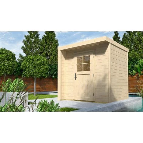 Les madriers en Epicéa de haute qualité avec une épaisseur de 21 mm, un plancher en bois massif inclus d’une épaisseur de 16 mm avec sous-construction en autoclave et un toit plat en bois massif d’une épaisseur de 16 mm assurent une stabilité optimale.