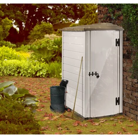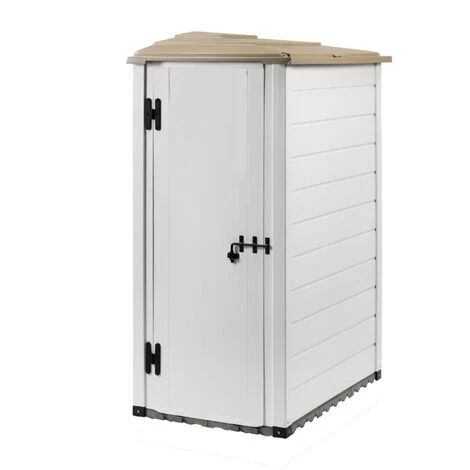 Abri mural EVO 100.1 REVERSO HABRITA a une capacité de stockage de 1,16 m2 hors tout vous procure l’essentiel pour votre rangement pour un encombrement réduit. Condamnable par la pose d’un cadenas (non fourni), cet abri protègera son contenu des enfants, des animaux ou des visites indésirables. Sa structure en résine ne nécessite aucun entretien et assure une longévité dans le temps, doublée d’une garantie de 5 ans de la structure. Son esthétique et sa couleur discrète s’intègreront parfaitement dans votre jardin. Compromis idéal et économique à la construction d’un abri en dur, il se monte très facilement. Il est livré avec un plancher en dalle de 40x40x4,5 cm très lourd qui permet d’installer l’abri directement sur le plancher sans réaliser de dalle béton. De plus, la grosse épaisseur des dalles isole l’abri lors de fortes pluies et de l’humidité stagnante. Livré avec un toit en ABS traité anti-UV qui permet à l’abri de résister auxvariations saisonnières.