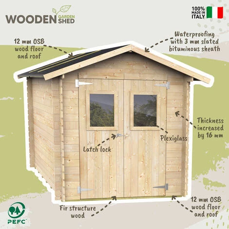 Caractéristiques techniques du cabanon de jardin Roby 198×198 :