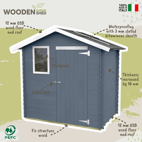 La structure en bois de sapin massif est naturelle pour que vous puissiez ensuite la repeindre de votre couleur préférée ou la laisser telle quelle. Elle est équipée d’un plancher et d’un toit en bois OSB extrêmement résistant à la flexion d’une épaisseur de 12 mm qui garantit une protection et une isolation de pointe. Par ailleurs, les parois renforcées de 16 mm sont en épicéa naturel.