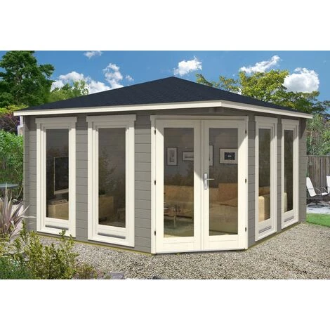 L’un de nos abris de jardin les plus appréciés est l’abri de jardin Maja-44 ISO. L’abri de jardin peut être commandé en deux épaisseurs de mur différentes : 44 mm et 70 mm. Sa forme pentagonale, son toit pointu et sa large double porte lui donnent un air majestueux et s’intègrent parfaitement dans n’importe quel jardin. La double porte et les deux fenêtres supplémentaires laissent entrer suffisamment de lumière à l’intérieur de l’abri de jardin, ce qui permet de l’utiliser comme bureau à domicile dans le jardin, sans être dérangé.