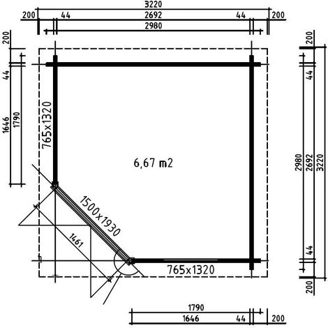 - Dimensions extérieures : 300 x 300 cm