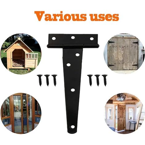 Utilisations multiples : Charnières en T Il peut être appliqué pour la porte de la remise, la porte de la grange, la porte du portail, la porte du jardin en bois, la porte de l’armoire, la porte de la chambre et ainsi de suite, les charnières en T sont largement appliquées dans la vie quotidienne