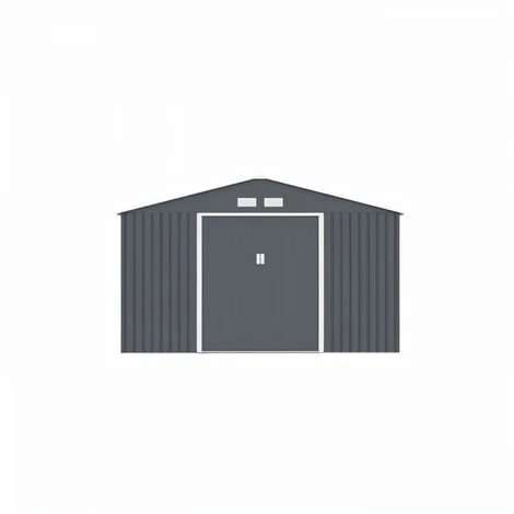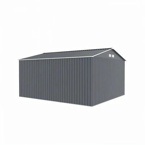 Abri de jardin en acier galvanisé avec kit d’ancrage inclus 12 m² Panneaux en acier galvanisé de 0,25mm Structure en acier galvanisé de 0,5 – 0,8 mm Dimensions: Surface utile (L x l): 330x372cm, soit 12.28m² Surface hors tout (L x l x H): 340x382x210cm, soit 12.99m² Poids net: 114kgs Hauteur des murs: 165cm Deux portes coulissantes verouillables (l x H):138x162cm Epaisseur du panneau: 0,25 mm Couleur: gris anthracit