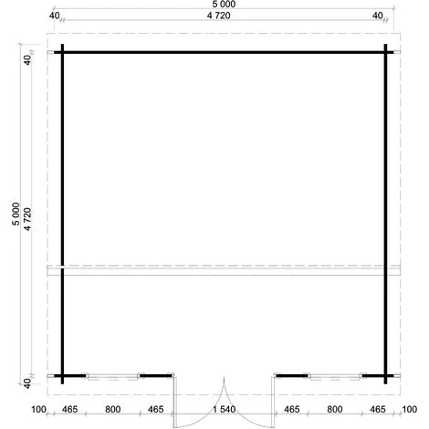 - Dimensions extérieures : 500 x 500 cm