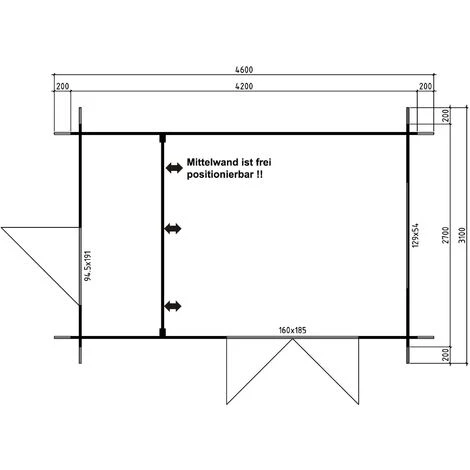 - Plancher non inclus pour une épaisseur de paroi de 28 mm (pour une épaisseur de paroi de 40 mm, le plancher et les solives sont inclus)