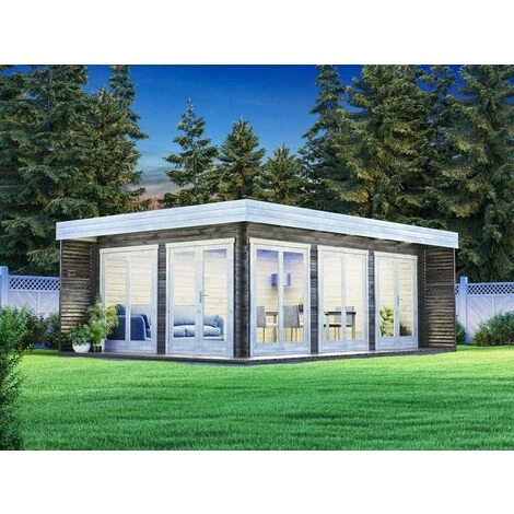 Salon de jardin en terrasse de la marque Carlsson avec une épaisseur de mur de 44 ou 70 mm et un toit plat.