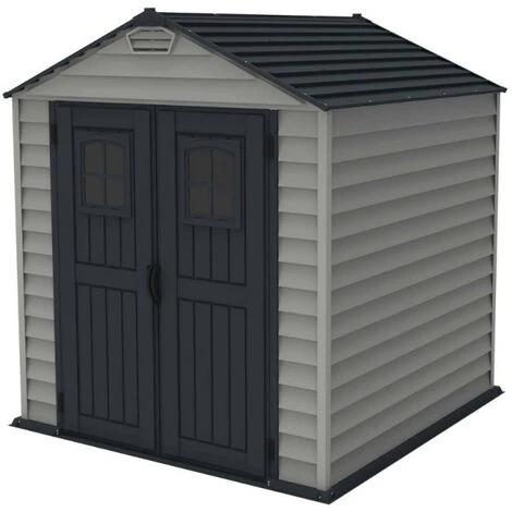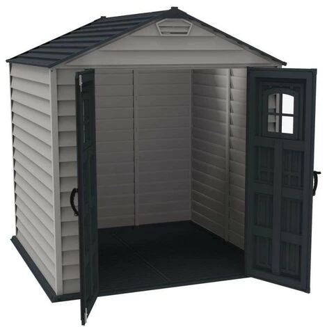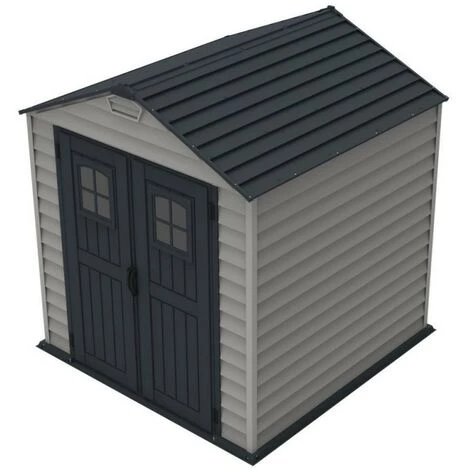 Cette abri de jardin en PVC fait partie de la ligne PLUS de Duramax et comprend un sol adapté aux utilisations lourdes, une porte marron large et haute (136 cm de largeur x 180 cm de hauteur) et un toit à bardeaux gris foncé, des colonnes renforcées en acier pour fournir résistance et durabilité et pour garantir un montage facile d’outils ou d’étagères, une fenêtre sur un côté (peut être installé aussi bien sur le côté gauche que sur le côté droit), une poignée Bloquable et prise d’air. C’est un abri en vinyle résistant aux intempéries qui ne rouille pas, ne pourrit pas, ne tombe pas et ne moisit pas, il est ignifuge et facile à monter. La gamme Duramax Plus représente la gamme la plus moderne de cabanes de jardin en plastique ignifuge (PVC) disponible sur le marché. Cette nouvelle gamme combine les couleurs gris clair et gris foncé, s’installant facilement dans n’importe quel jardin, cour ou terrasse. Les abris et garages de cette gamme sont livrés avec sol ou kit de fondation, ce qui élimine la nécessité de construire un fond spécial et qui peut supporter de grands poids. Les doubles portes larges et hautes, permettent d’utiliser pleinement le volume intérieur de la cabane. Les abris Duramax Plus sont construits pour durer dans le temps, grâce à la résine vinylique qui empêche les différentes conditions climatiques. Ils n’ont pas besoin d’être traités, ne rouillent pas, ne pourrissent. Elles sont soutenues par des poutres internes en acier galvanisé résistant. Les piliers latéraux sont renforcés avec une structure solide en métal qui confère une résistance aux abris et permet le montage d’étagères ou l’accrochage d’outils de jardin. Les poignées avec serrure (cadenas non inclus) protègent le contenu et le double système d’évacuation d’air avec grille rainurée sur le tympan augmente le flux d’air à l’intérieur. L’abri est facilement assemblable grâce aux instructions de montage détaillées.