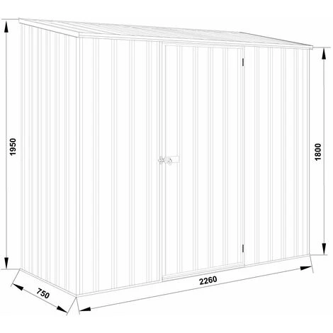 Dimensions extérieures (hors tout : l. 2,26 m x p. 0,78 m). Porte avec fermeture via loquet.