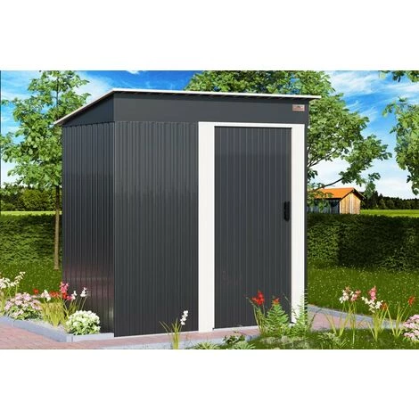 Grâce à la porte coulissante pratique, munie d’une plinthe, vous pouvez également y ranger des outils plus imposants. La cabane à outils est munie d’un dispositif pour cadenas (cadenas non inclus dans la livraison).