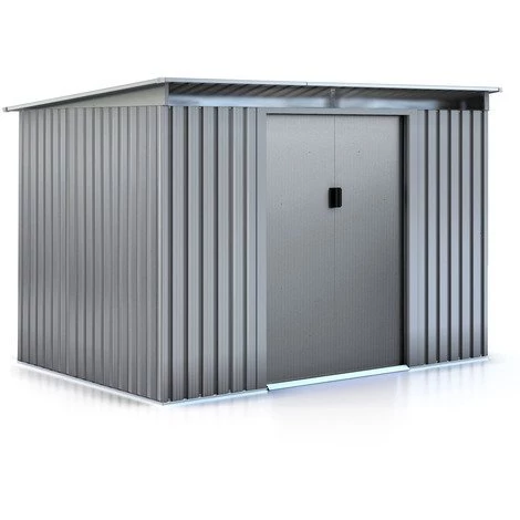 Abri de jardin en acier galvanisé – 1,81 x 2,61 m – Traitement anti rouille et anti UV – Double porte coulissante – Rangement de jardin – GrisAbri de jardin métal « Texas » – 4,72 m²