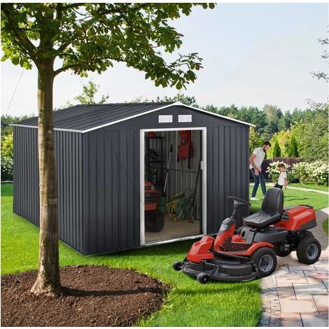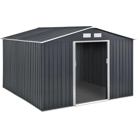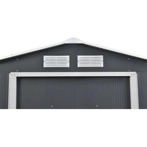 Abri de jardin Vegas – En acier galvanisé – Dimensions hors-tout : – Grilles d’aération – Double porte coulissante – Résiste aux UV et à la rouille – Base/fondation non inclus – GrisL’abri de jardin parfait PLUS D’ESPACE