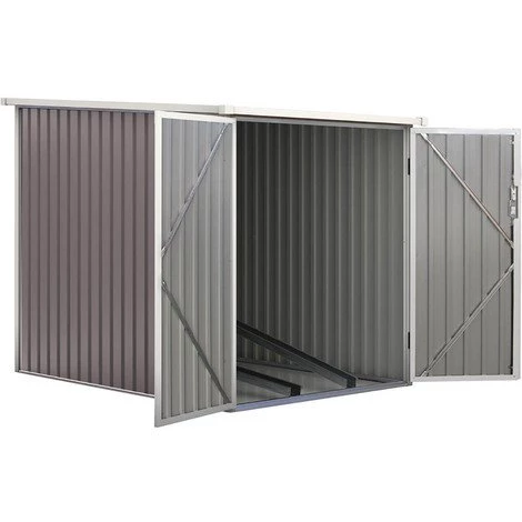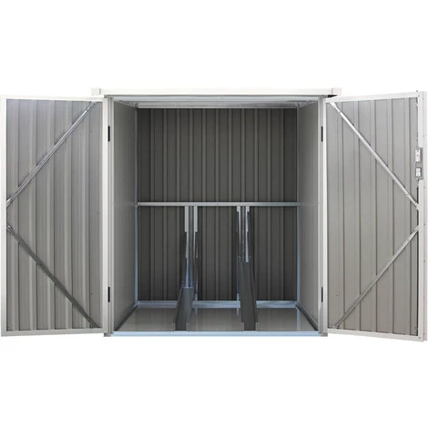Abri de Vélo « Dallas » – 2.8 m² L’abri de vélo « Dallas » offre un espace idéal de rangement, il protège vos vélos des intempéries et du vol. Il dispose d’une large porte double vérrouillable. Cette abri à vélo est fabriqué en acier galvanisé. Il possède une toiture légèrement inclinée capable de supporté une charge maximale de 60 kg/m², en cas de neige par exemple. Afin de garer les vélos dans de bonnes conditions, l’abri à vélo « Dallas » intègre des rails de support vélos. : – Rails pour entreposer les vélos – Structure en acier galvanisé – Épaisseur paroi : 0.25 mm – Épaisseur structure : 0.5-0.8 mm – Résistant aux UV et à l’abrasion – Double porte avec verrou – Pas de fondation. Paroi : Acier galvanisé. Structure : Acier galvanisé. Paroi : Gris. Surface hors tout (m²) : 1.42 x 1.98 x 1.57 m. Extérieures : 1.28 x 1.89 m. Intérieures : 1.24 x 1.58 m. Faîtage : 1.57 m. Hauteur paroi : 1.42 m. Epaisseur paroi : 0.25 mm. Type de porte : Double – Avec serrure. Dimensions de porte : L1.2 x H1.38 m. Type de serrure : A clés – Fournies. Poids maximum supporté : 60 kg/m². Résistance au vent : 20m/s. : – Porte verrouillable – Anti UV – Anti rouille. Colis Poids : 48.3 kg. Colisage : 2 colis : – 1,72 x 0,68 x 0,11 m, 35 kg – 2,055 x 0,255 x 0,11 m, 25,5 kg.