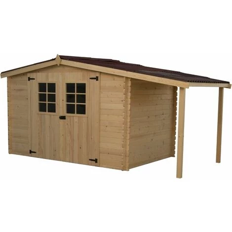 Abri emboîté 28 mm sans plancher fabriqué en sapin massif avec son bûcher pour le stockage du bois ou des vélos.