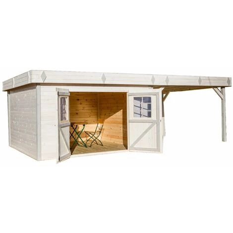 Parois : abri 28 mm SANS PLANCHER en sapin massif. Livré avec toiture mono pente (pente 2°)toiture en bac acier garantie 10 ans