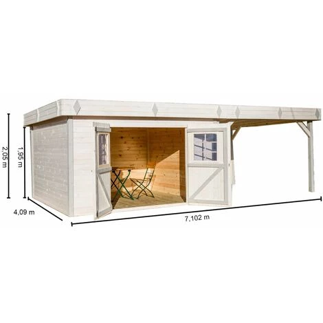 Abri en madriers massifs – Toit plat – Avec Terrasse – 138 m2 (Sans plancher)