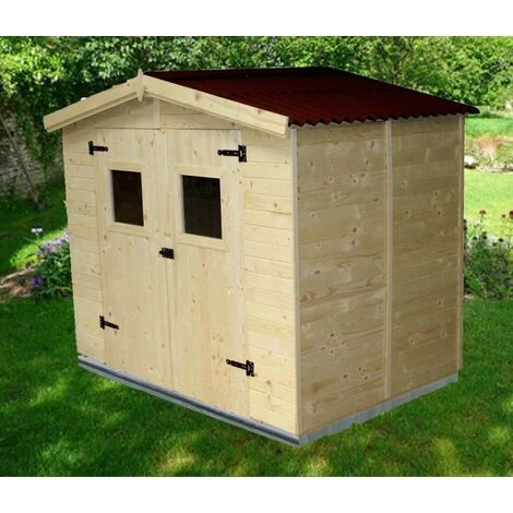 Abri en panneaux de 16 mm avec plancher fabriqué en épicéa massif. À lasurer.