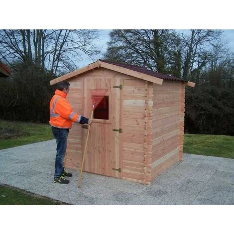 Abri madriers 28 mm fabriqué en douglas massif – S.h.t. : 4,28 m2 – Toit double pente.