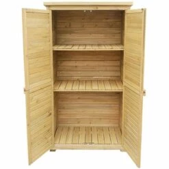 Présentation produit: Armoire abri de jardin portes en lamelles 160 cm bois d’épicéa toit bitumé