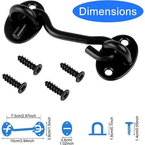 Large gamme d’applications : les serrures à œil peuvent être utilisées pour verrouiller les fenêtres, les volets, les granges, les portes coulissantes et doubles, les portails, les portes de garage et de remise. Les serrures à crochet peuvent également être utilisées comme arrêts de porte ou de fenêtre.