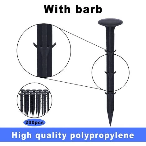 OSQI Piquets De Fixation De Jardin En Plastique, Piquets De Fixation De Jardin Pour La Protection UV Contre Les Mauvaises Herbes (200 Pièces, Noir)