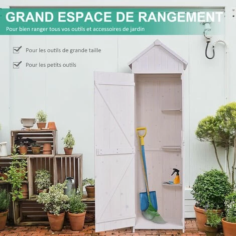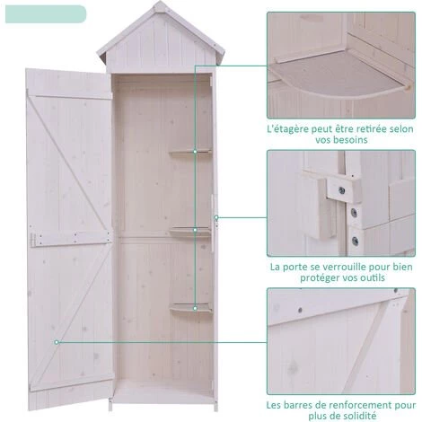 Cette superbe armoire de jardin en pin massif (prĂ©-huilĂ© et peint en blanc) avec toit bitumĂ© vous sera grandement utile ! DotĂ©e de plusieurs espaces de rangement grĂące Ă ses 3 Ă©tagĂšres, trĂšs pratique d’utilisation avec sa porte verrouillable par loquet, vous pourrez organiser et protĂ©ger vos outils et accessoires de jardin.