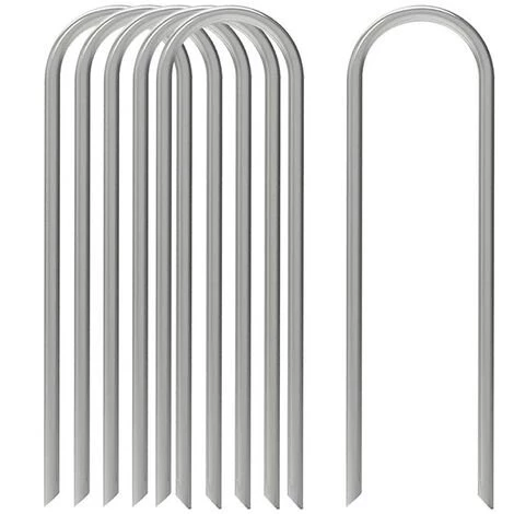 Fixation Rapide et Retrait:Les piquets de jardin pour filet offrent une excellente tension et une bonne tenue dans le sol, en plus ils ont été galvanisés pour offrir une protection encore plus élevée contre la rouille, et la conception sans barbe ne signifie plus de tissu ruiné lors du retrait des piquets. Si le sol est plus dur, veuillez saisir fermement la cheville et tapoter doucement dans le sol avec un maillet, une force excessive peut faire plier les chevilles dans un sol pierreux.