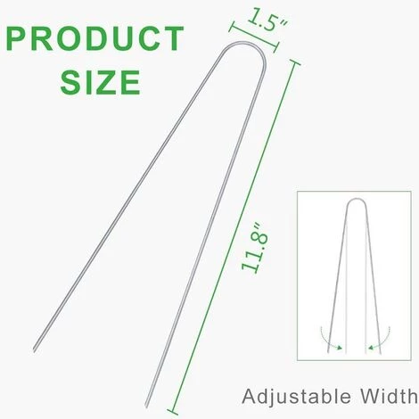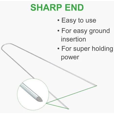 Spécifications:30 cm de long; 6 cm de large; Quantité d’emballage: piquets de sol en forme de 50xU, il peut non seulement fixer magnifiquement les quatre coins du gazon, mais aussi le rendre plus facile à retirer. Conception trapézoïdale pour une tension supplémentaire dans le sol. Extrémités biseautées pour un montage rapide et sûr dans le sol.
