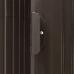 Caractéristiques Matière : Acier Largeur: 257 Hauteur: 181 Couleur: Marron Cet abri de jardin en acier galvanisé sera parfait pour ranger une grande variété d’outils, de mobilier de jardin et d’équipements de jardin. L’abri de jardin offre non seulement une protection contre la saleté et la poussière, mais également contre le vent et les intempéries. [...]