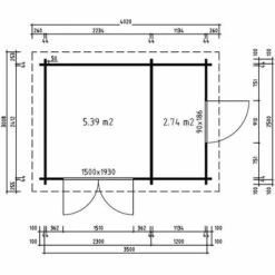 Caractéristiques Longueur: 460 Largeur: 310 Épaisseur: 28 Matière: Bois Description de l’article : Dimensions extérieures : 420 x 270 cm Dimensions du soubassement : 400 x 250 cm Hauteur de la paroi latérale : environ 210 cm Hauteur totale : environ 235 cm Volume : environ 22,3 m³ Double porte en bois lamellé-collé : 160 [...]