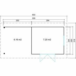 Caractéristiques Longueur: 603 Largeur: 318 Matière: Bois Description de l’article : Dimensions extérieures avec surplomb du toit : environ 603 x 318 cm Dimensions extérieures du mur : 555 x 250 cm Hauteur de la paroi latérale : environ 202 cm Hauteur totale : environ 225 cm Volume : environ 29,6 m³. 1x double porte [...]