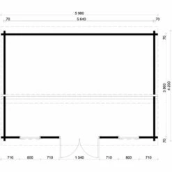 Caractéristiques Longueur: 618 Largeur: 320 Matière: Bois Description de l’article : Dimensions extérieures des madriers : environ 598 x 300 cm Dimensions du soubassement : 578 x 280 cm Hauteur de la paroi latérale : environ 220 cm Hauteur totale : environ 230 cm Volume : environ 36,4 m³ 1x double porte en bois lamellé-collé : [...]
