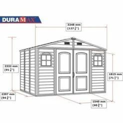 Caractéristiques Matière: Résine Longueur: 183 Largeur: 183 Cette cabane en PVC fait partie de la gamme Plus de Duramax et comprend un sol adapté à des utilisations lourdes, une porte marron large et haute (154 cm de large x 180 cm de haut) et un toit à barreaux gris foncé, des colonnes renforcées en acier [...]