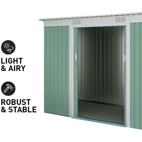 Avec l’abri de jardin Porto Cervo Nature, vous pouvez ranger tout ce dont vous avez besoin pour l’entretien du jardin de manière organisée ! La maison convient également comme rangement pour les gros outils ou comme réserve de bois ou même pour les vélos et les équipements sportifs. Contrairement aux abris de jardin vendus sur le marché, le bardage de l’abri Porto Cervo Nature est constitué de tôles galvanisées épaisses rivetées à un cadre en acier galvanisé pré-peint qui garantit une longue durée de vie et une résistance maximale. Par ailleurs, le toit ancré à la charpente permet un drainage rapide de la pluie et de la neige et donne à la maison un aspect plus agréable. L’abri de jardin Porto Cervo Nature est robuste et spacieux et offre une excellente isolation contre les conditions extérieures : l’abri résiste efficacement aux intempéries et aux changements de température, protégeant tout ce dont vous avez besoin de la saleté et de la poussière, le tout au nom de la praticité. Les doubles portes coulissantes avec rampe facilitent l’accès et laissent ainsi une plus grande liberté de mouvement pour pouvoir vous déplacer et ranger l’équipement sans effort ; les bouches d’aération placées sous le toit garantissent un échange d’air continu gardant ainsi l’environnement toujours frais et sec ; le design mince et les dimensions compactes lui permettent d’être positionné contre le mur extérieur le rendant parfait pour la cour et les petits jardins. En outre, les poignées des portes coulissantes sont équipées d’une serrure pour cadenas pour se protéger contre le vol.