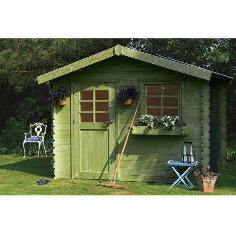 Remarques : – Vérifier que l’accès au point de livraison soit possible par une semi-remorque – Pas de livraison vers les îles sans pont avec le continent : Abri jardin bois Sologne – Modèle imprégné (vert) – 8.88 m² – 298 x 298 x 239 cm. Structure : Bois. Surface intérieure (m²) : 7.53 m². Surface extérieure (m²) : 8.88 m². Intérieures : 274 x 274 x 191 cm. Extérieures : 298 x 298 x 239 cm. Hors tout : 345 x 335 x 239 cm – 11.54 m². Hauteur des murs : 191 cm Epaisseur des madriers (côté) : 28 mm. Hauteur faîtage : 239 cm. Type : 1 porte. Fenêtre : 1 fenêtre S’ouvre en oscillo-battant. Épaisseur : 28 mm. Origine : Belgique. Type de toiture : Feutre bitumé Epaisseur du toit : 16 mm Résiste aux intempéries (75 kg/m²) Résiste au vent (30 kg/m²). Surface de la toiture : 11.48 m². Pourcentage de la pente : 19 °. : Système d’aération Surface à peindre : 29.30 m² Rebord d’entrée Verres de sécurité Poignée de sécurité pour enfants. Dimensions de la dalle béton : 2980 x 2980 mm. Colisage : 1 colis : – 3,53 x 1,19 x 0,48 m, 560 kg. Dimensions : 8 – 9 m².