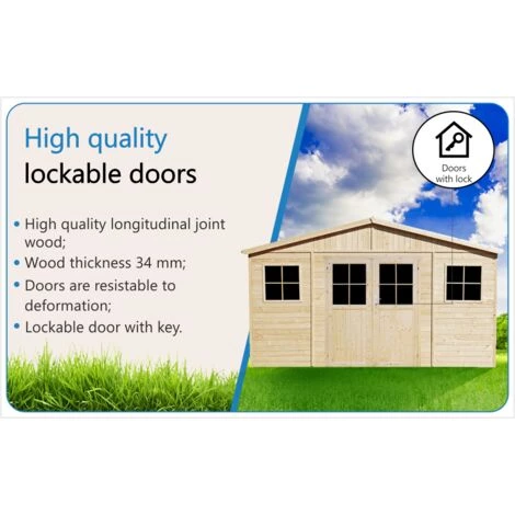 Résistant aux intempéries: grâce à la qualité des matériaux et au feutre du toit, le contenu est protégé des intempéries. Traitez le bois brut pour maximiser la durée de vie de votre abri.