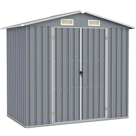 Cet abri de jardin est idéal pour ranger une grande variété d’objets comme des outils, des meubles de jardin, de l’équipement de jardin, etc. L’abri offre une protection contre la saleté, la poussière, le vent fort et les intempéries. Cette maison de stockage est équipée d’orifices d’aération, conçus comme des volets pour tenir la pluie au dehors. Elle assure également la ventilation tout le temps pour réduire l’accumulation d’humidité et d’odeurs dans la maison. Ce hangar de stockage d’extérieur en acier galvanisé nécessite un entretien minimal et est très durable. Les portes à double ouverture à l’avant permettent d’entrer et de sortir facilement. L’eau de pluie s’écoule automatiquement du toit grâce à sa conception inclinée.