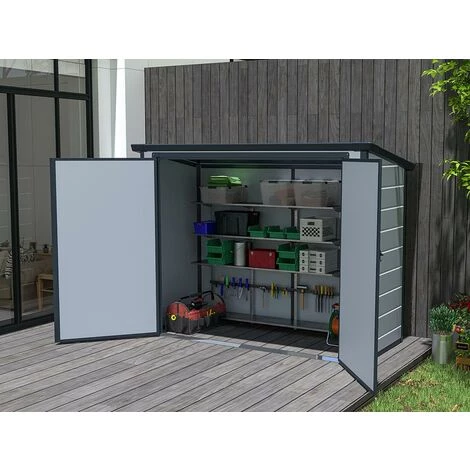 Avec ses deux grandes portes et son accès large, vous pourrez venir y entreposer tout type d’équipement encombrant dans votre jardin. Idéal pour cacher vos poubelles, vous pourrez aussi y ranger votre vélo, votre tondeuse ou vos outils de jardinage et de bricolage.