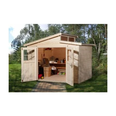 L’abri 226 T.3, brut est fabriqué en épicéa non traité. L’abri de jardin en bois de dimensions hors-tout : 327 x 231 x 252 cm, offre une surface intérieure utile de 5,96 m². Ce modèle est pratique pour les petits espaces et apporte une solution idéale de rangement dans son jardin.