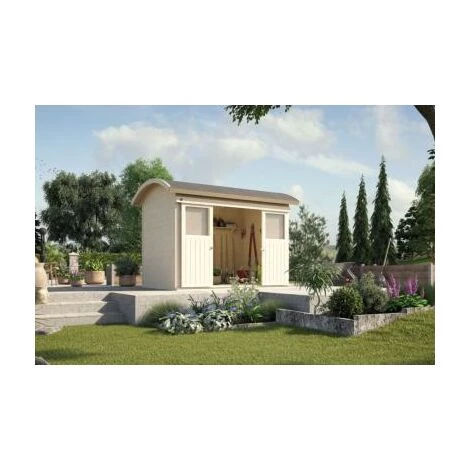 L’abri 228, brut est fabriqué en épicéa non traité. L’abri de jardin en bois de dimensions hors-tout : 344 x 241 x 248 cm, offre une surface intérieure utile de 5,96 m². Ce modèle est pratique pour les petits espaces et apporte une solution idéale de rangement dans son jardin.