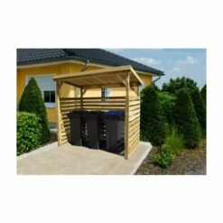 Abri bûche WEKA 663 B T1, en pin, traité autoclave. Construction extra stable avec des planches aux bords lisses d’épaisseur de 19 mm. Toit en appentis en bois massif de 19 mm. Revêtement en bitume pour première couverture. Epaisseur de poteaux 60 x 60 mm. Espace pour jusqu’à 4,67 m3 de bois. Dimensions hors tout : 160 x 130 x 204 cm.