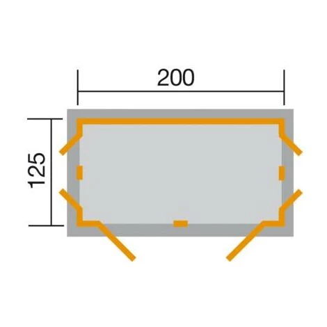 Une membrane de toit auto-adhésive de qualité pour une protection contre le rayonnement UV et les intempéries est incluse. 2 portes frontales et 4 portes latérales. Porte: cadre en bois peint, garnissage en plastique. Poignées de portes modernes et inoxydable en aluminium, fermeture à roulette réglable, 4 serrures à demi-cylindre de haute qualité. Dimensions hors tout: 224 x 155 x 217 cm - Dimensions au sol L x P (cm): 200 x 125