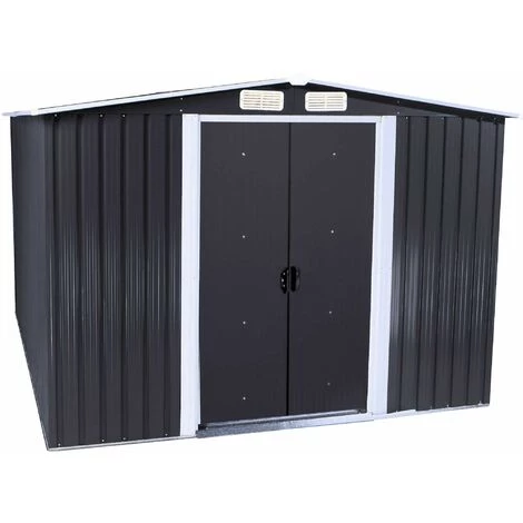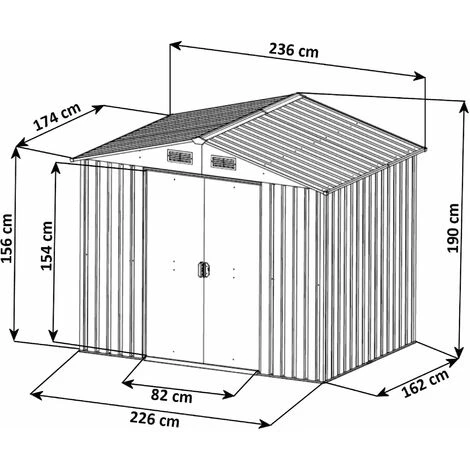 Avec une surface d’environ 4 m², la remise à outils en métal offre un grand espace pour tous les outils et équipements de jardin. Grâce aux deux portes coulissantes en tôle d’acier peu encombrantes avec une hauteur de passage de 154 cm, vous pouvez entrer confortablement dans l’abri de jardin. Deux grilles d’aération assurent une ventilation optimale. L’abri à outils de jardin peut également servir d’abri à vélo ou de poubelle.